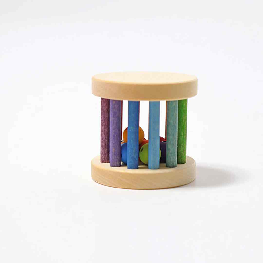 Der Grimm’s Mini Babyroller ist ein wunderschönes erstes Greifspielzeug für dein Baby. Die gerollten Holzstäbe, die zarten Farben und die kleine Holzperle im Inneren laden zum Entdecken, Fühlen und Lauschen ein.