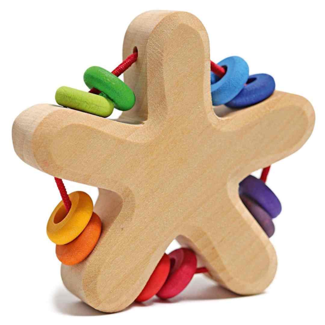 Grimm’s Sternen-Rassel – Regenbogenstern aus Holz für Babys