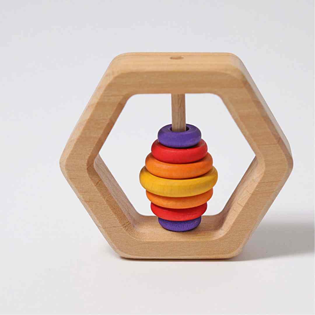 Grimm’s Sechseck Rassel – Holzgreifling & Klangspiel für Babys ab Geburt