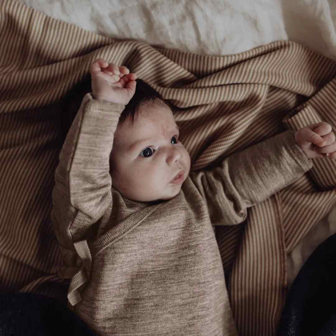 Der Wollfleece-Wickelpulli von Finch & Fabel ist ein traumhaft weiches Wohlfühlteil für die Allerkleinsten. Hergestellt aus einem feinen Mix aus Merinowolle und Bambusfleece, bietet er natürliche Wärme und hervorragende Atmungsaktivität.